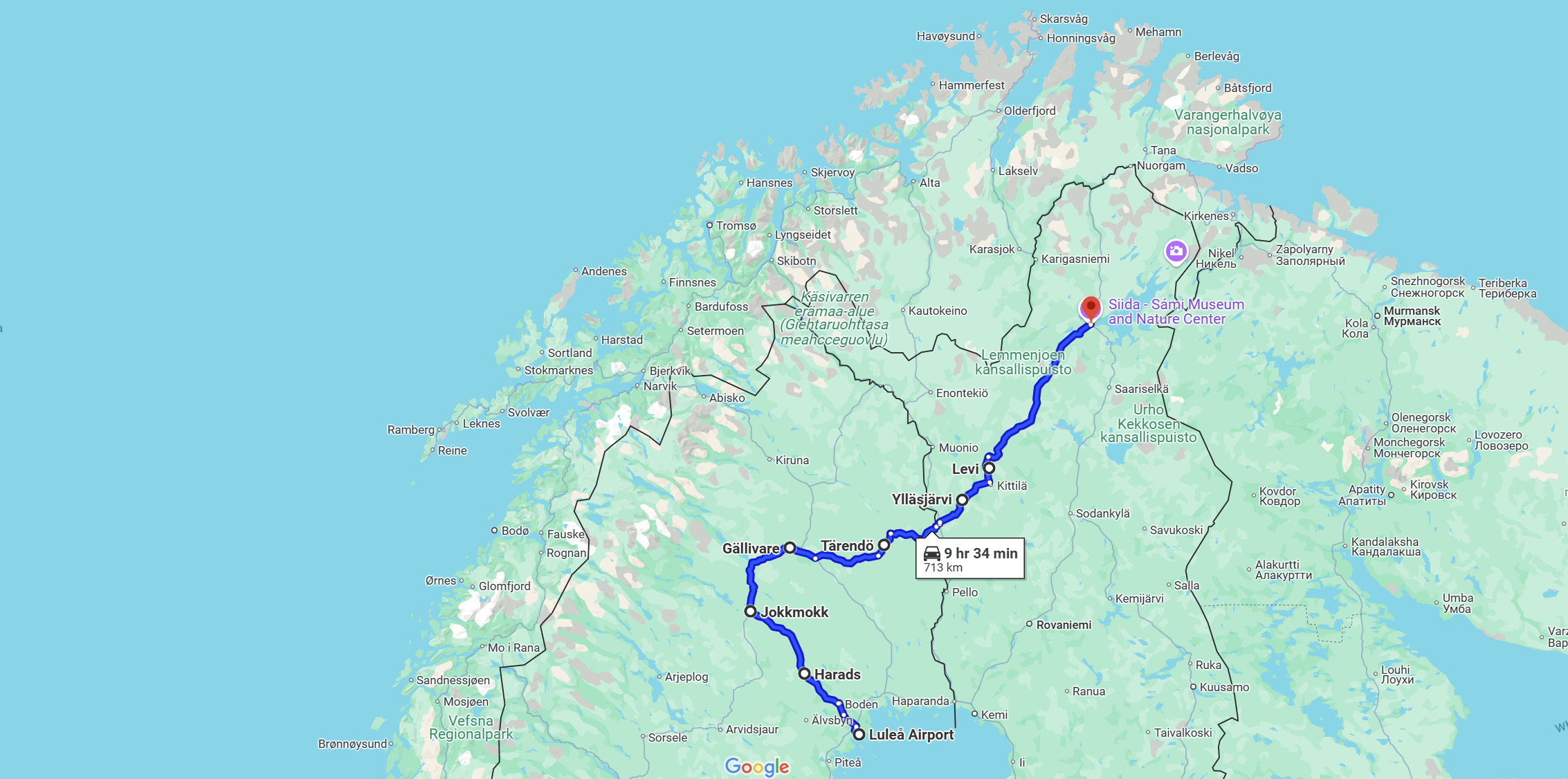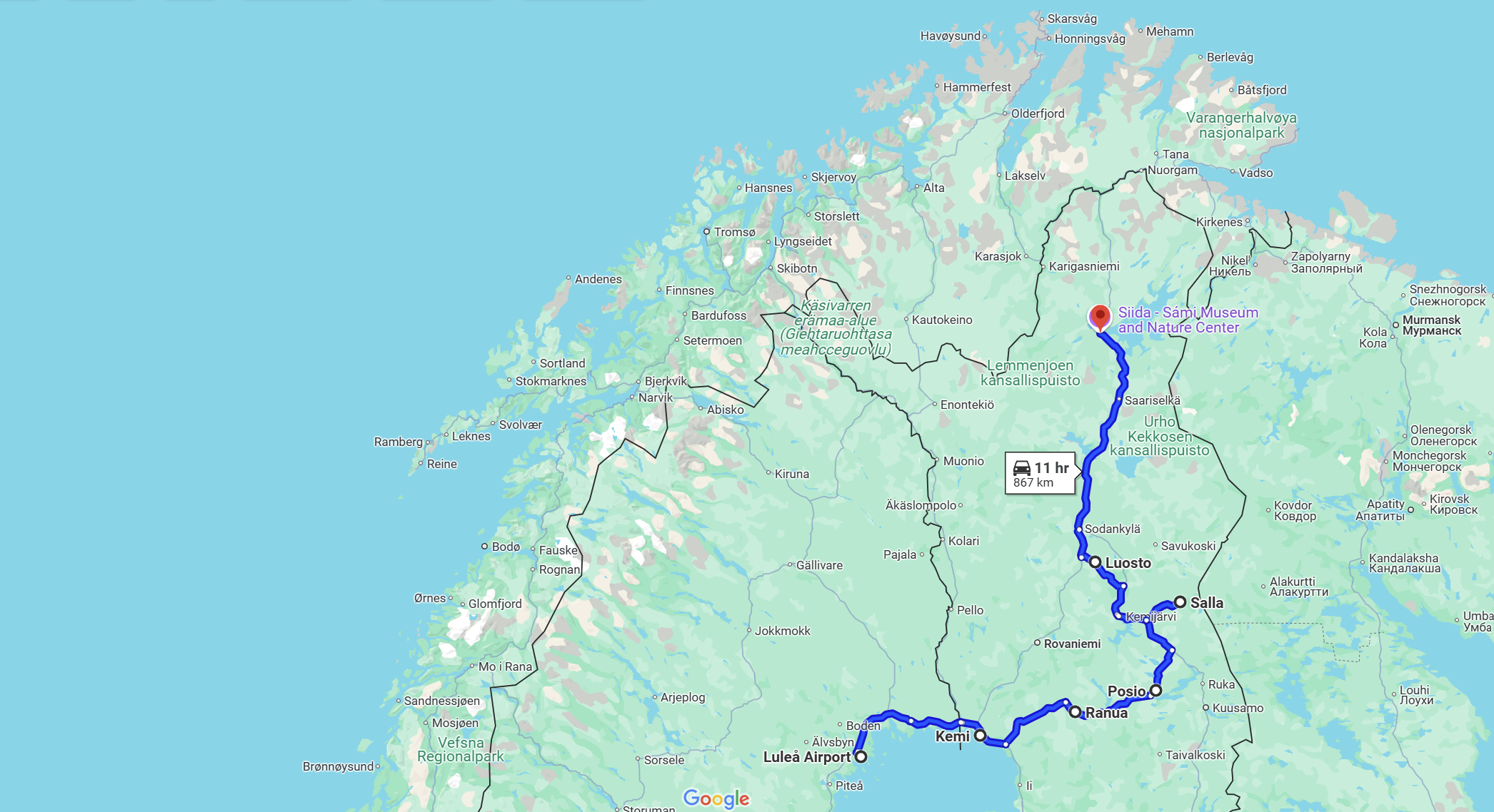 Route: Luleå - Kemi - Ranua (Zoo) - Posio - Salla - Luosto – Inari